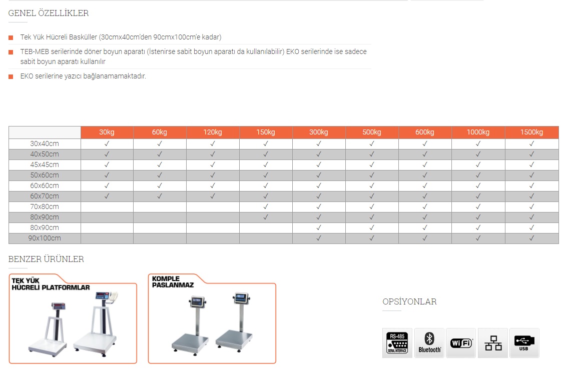 Tek Yük Hücreli Basküller (30cmx40cm’den 90cmx100cm’e kadar)TEB-MEB serilerinde döner boyun aparatı (İstenirse sabit boyun aparatı da kullanılabilir)