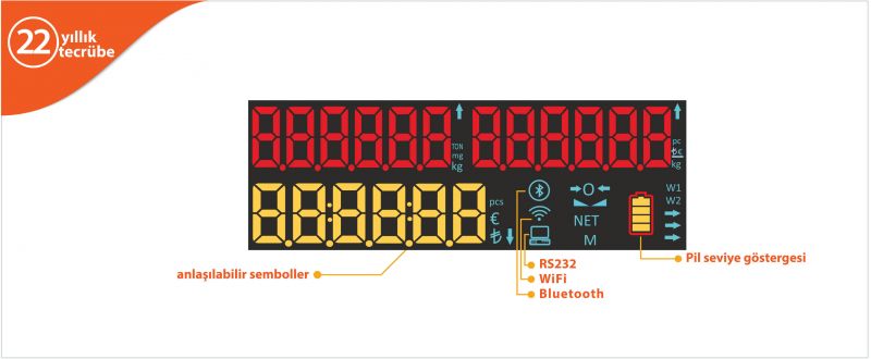 Onaylı / Onaysız mod: 3.000 taksimat 15kg maksimum çekerli ürün üretebilme5 tuşlu basit kullanım6 hane LCD gösterge. Rakam boyu: 28mm 6 hane LED göste