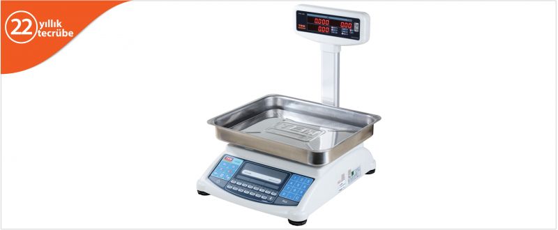 Büyük, dayanıklı gövdeİkili taksimat (Çok Aralıklı 2x3.000 taksimat)3 x 6 hane kırmızı LED gösterge. Rakam boyu: 13 mm 250 adet PLU (Birim Fiyat Hafız
