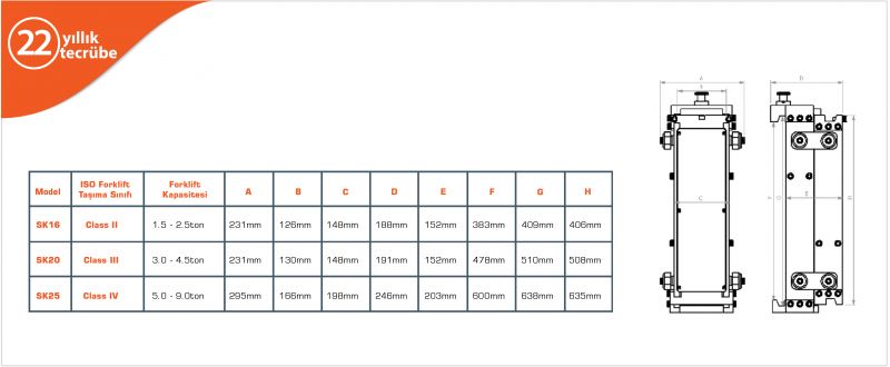 Mükemmel performans ve hassasiyet Sınıf II, III ve IV standardına sahip tüm marka ve model forkliftlerle uyumlu